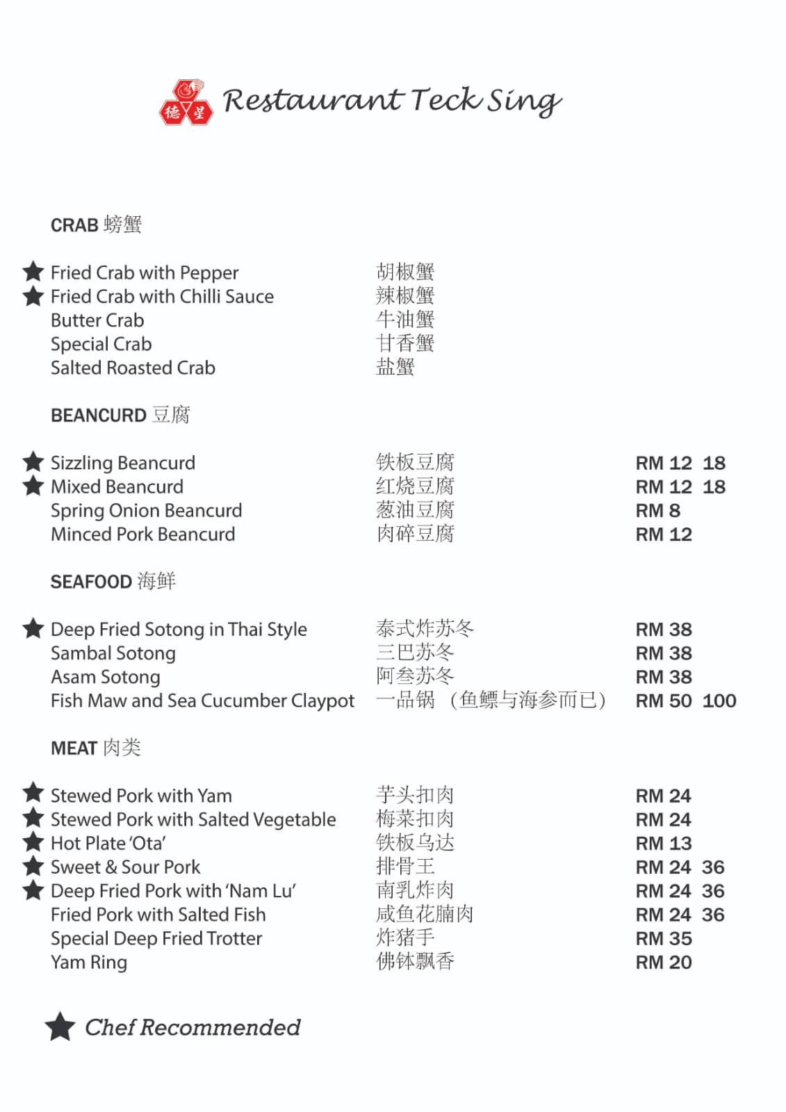 What sets Restaurant Teck Sing apart is its blend of traditional Chinese and Malaysian flavors. The restaurant’s menu is an array of delightful dishes that cater to diverse tastes. It’s a place where every dish is prepared with meticulous care, ensuring an unforgettable dining experience.